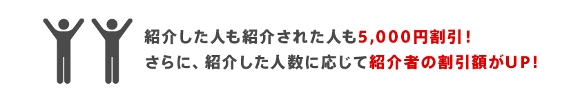 また、2人以上紹介された場合、紹介者の割引は累積となりますので、2人で10,000円割引、3人で15,000円割引となります。